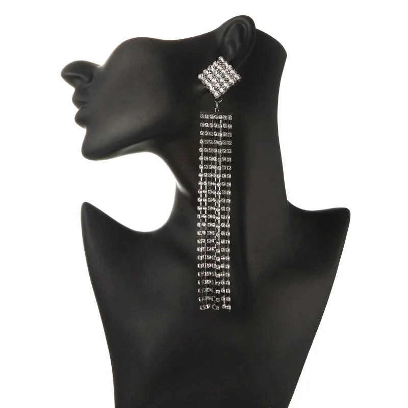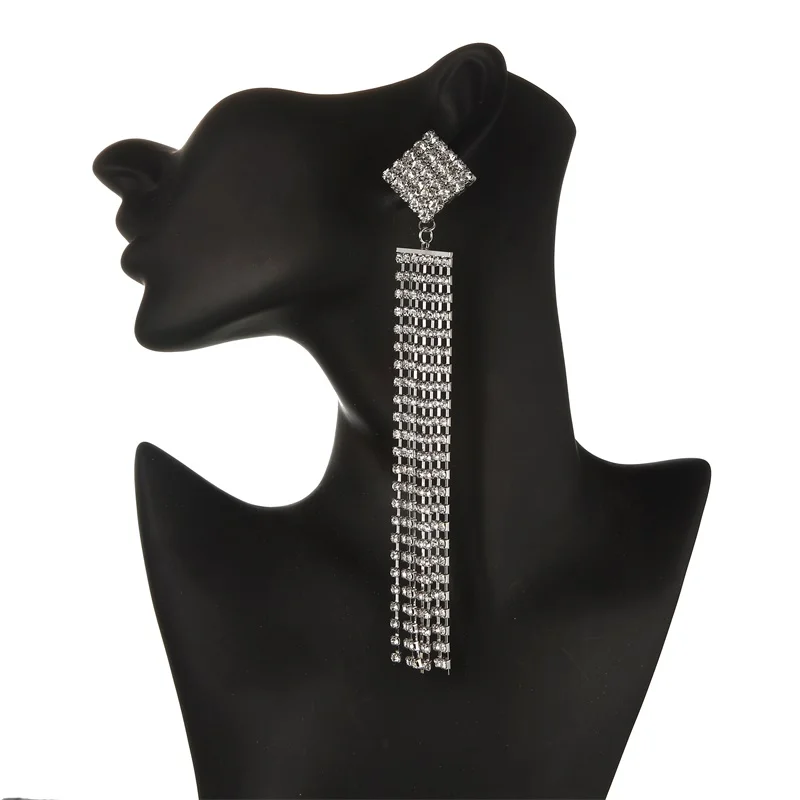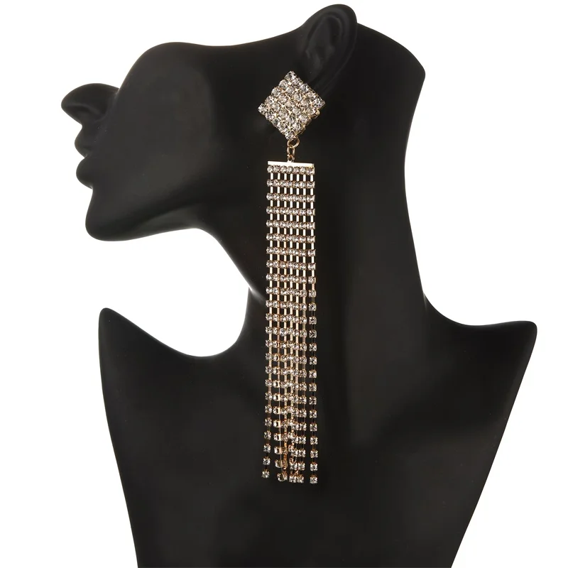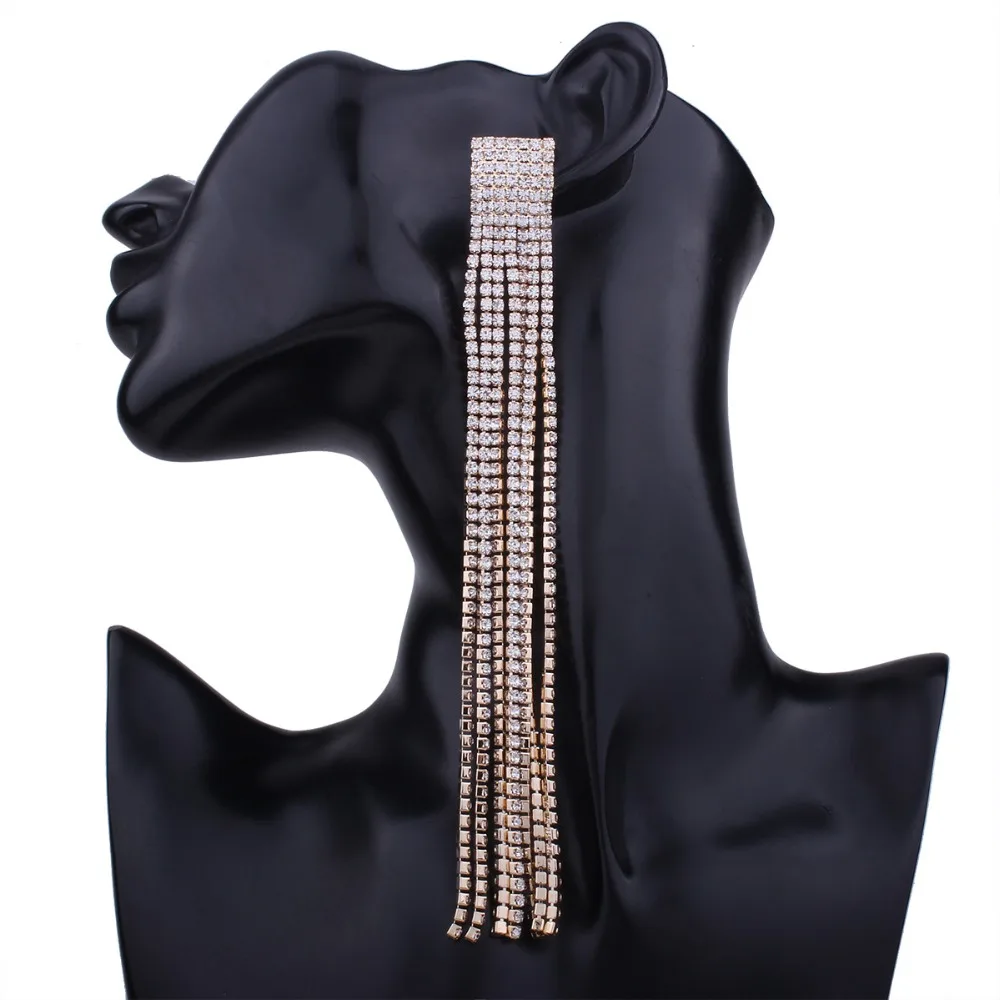 Women's Long Earrings With Rhinestone Hanging Big Statement Earings Luxury Crystal Party Fashion Wedding Jewelry New Year Gift