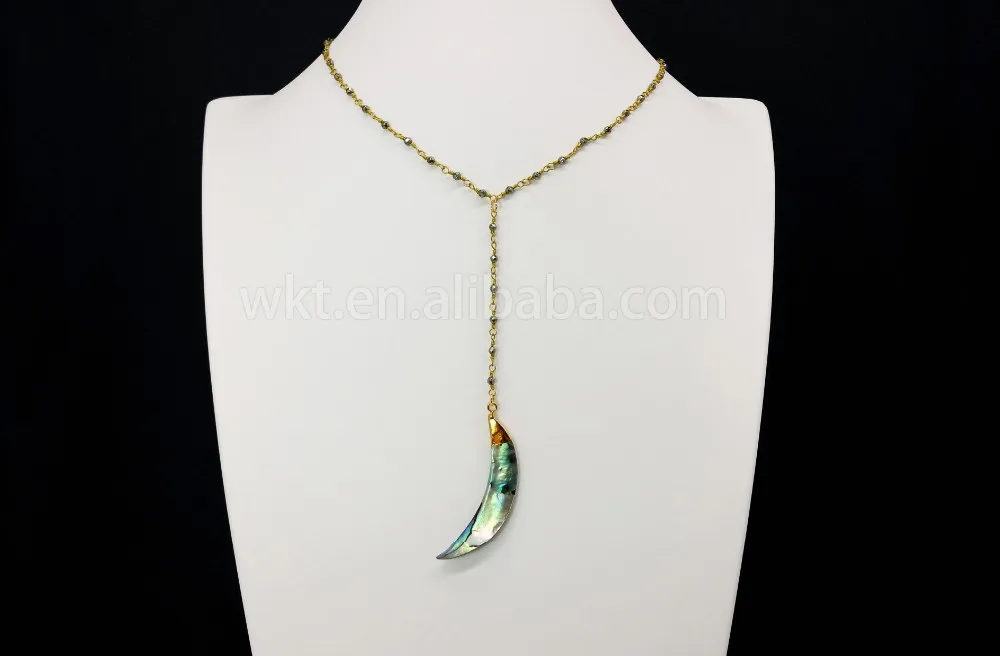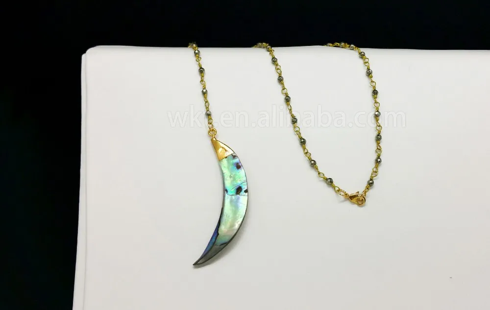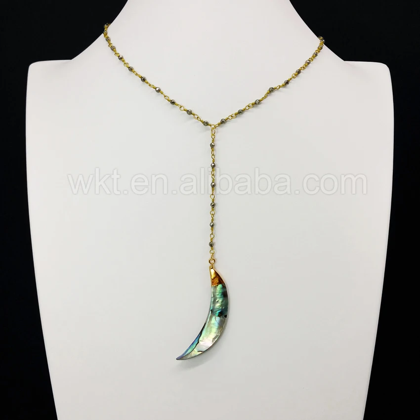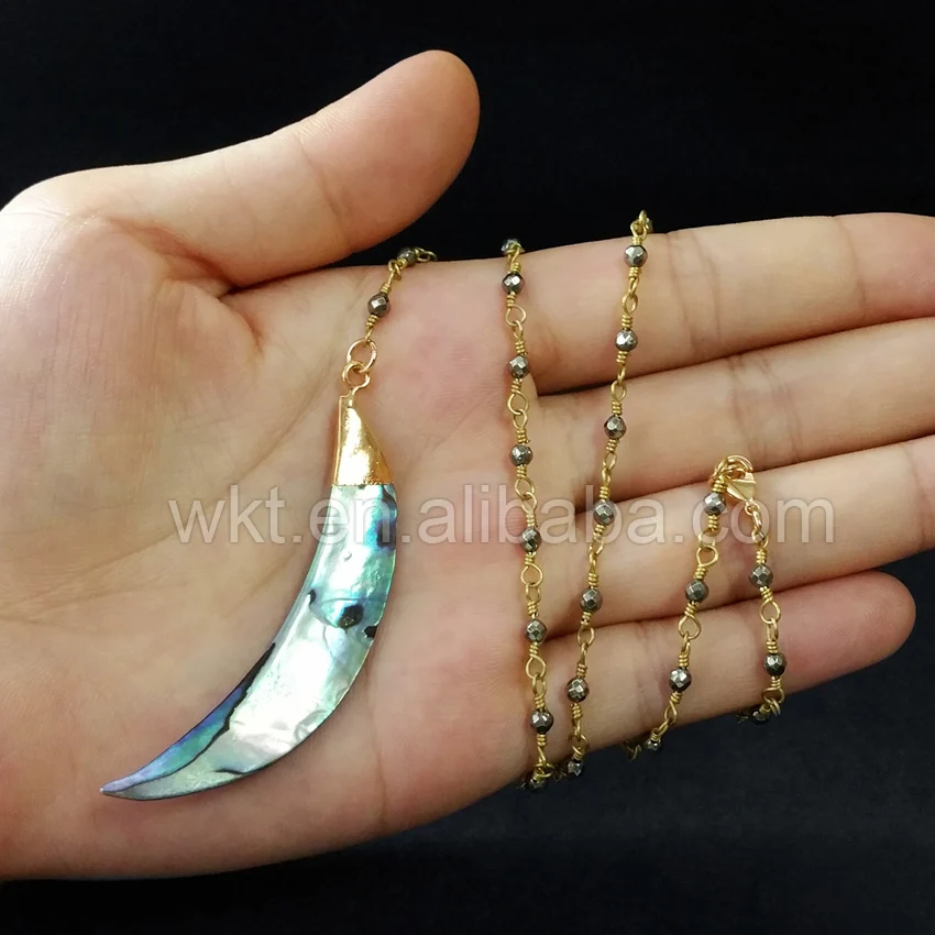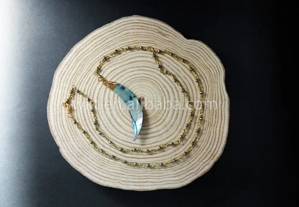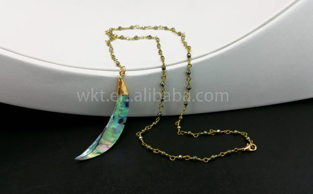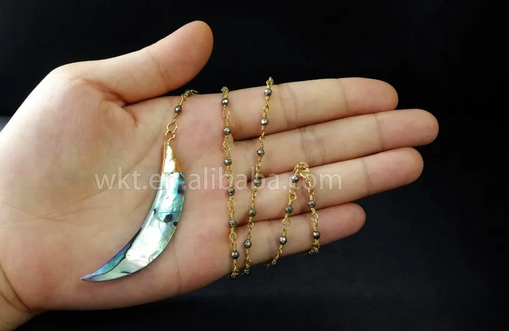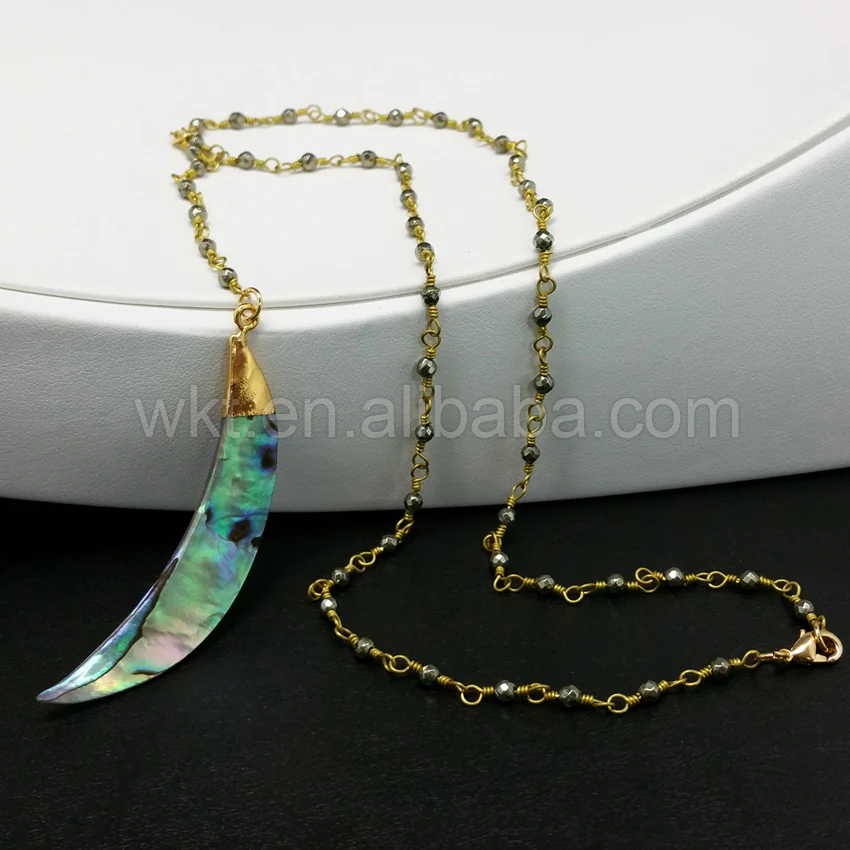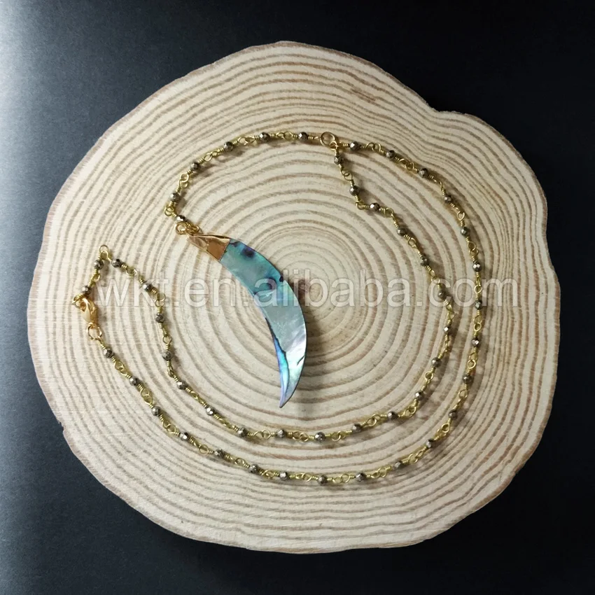 WT-N678 Raw abalone shell pendant necklace for wholesale ,beautiful rosary rosary pyrite beads chain necklace choker necklace for jewelry making