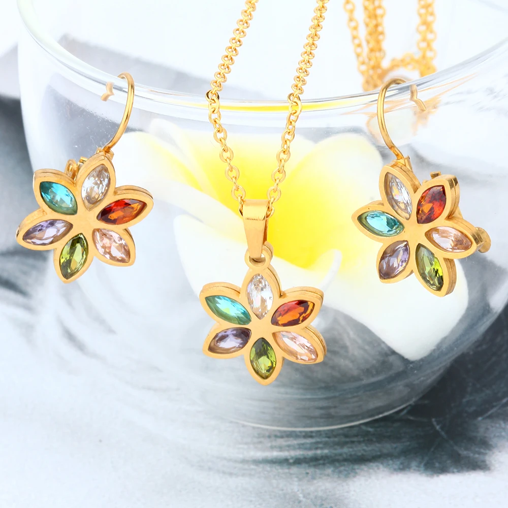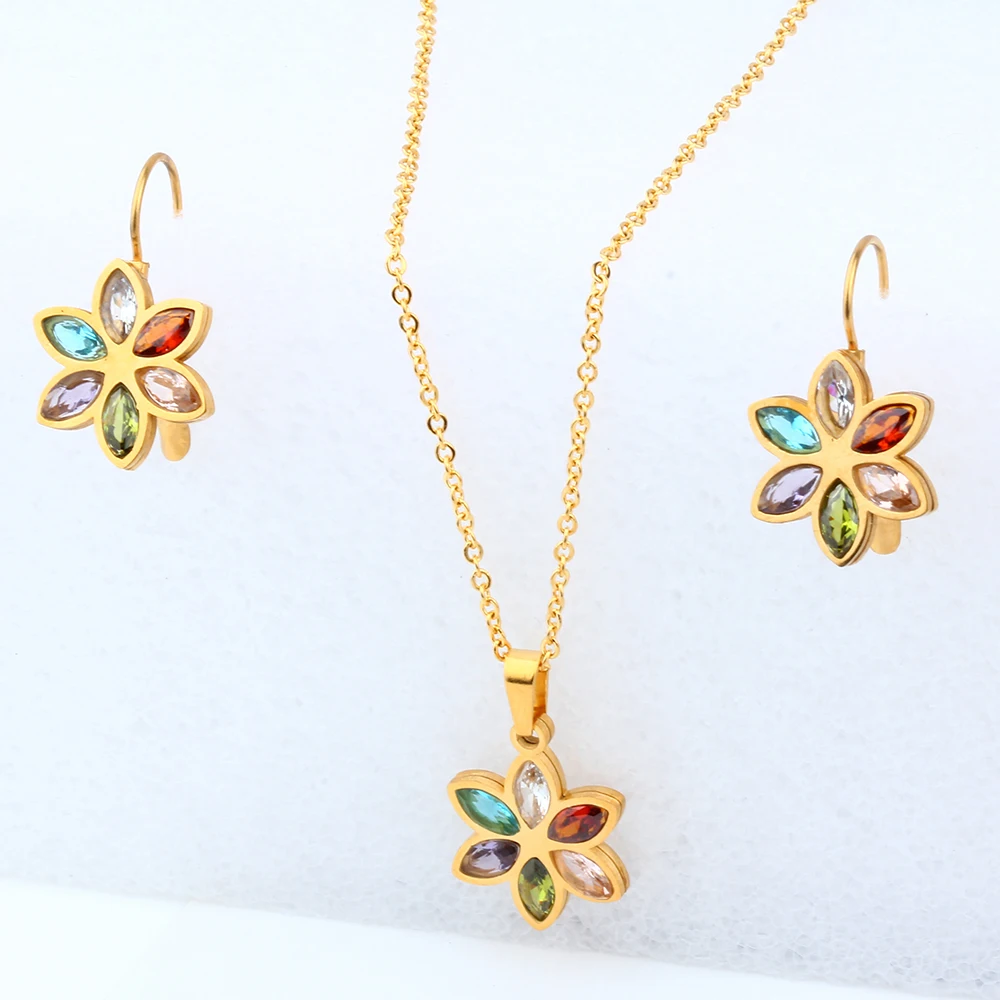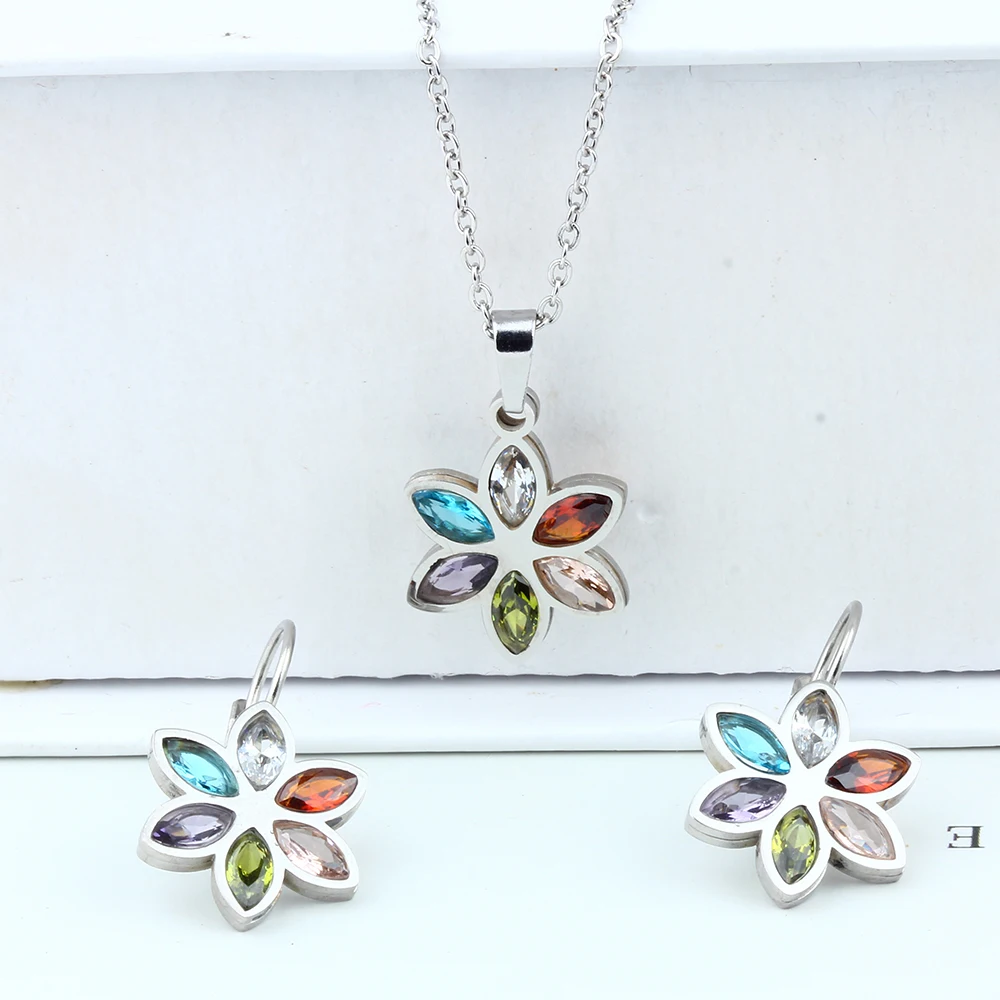 LUXUKISSKIDS Hot Selling Heart Shaped Pendant CZ Necklace And Earrings Set In Jewelry For Women With Free Chain