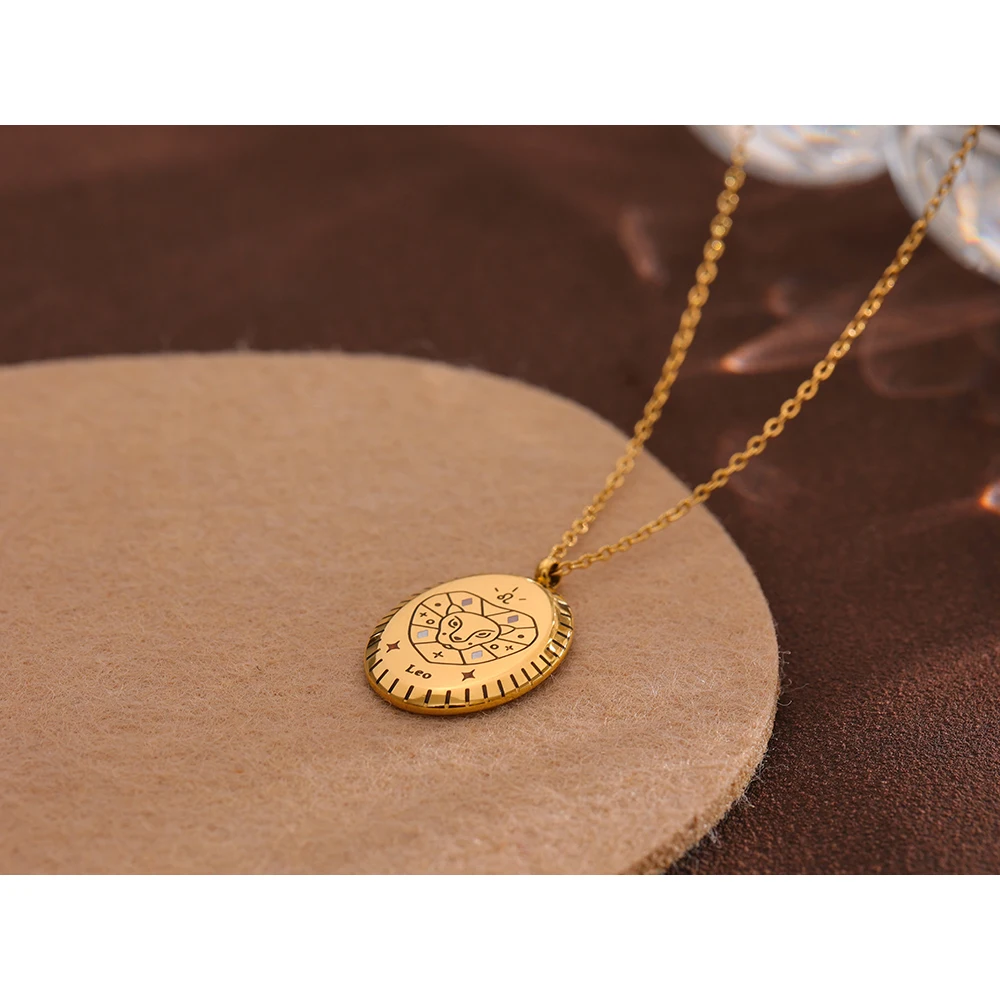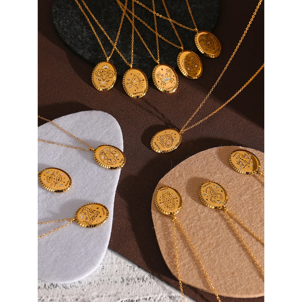 Yhpup New 316 Stainless Steel 12 Constellation Drop Pendant Necklace Waterproof Golden Jewelry 18 K Metal Collar Necklace Gift