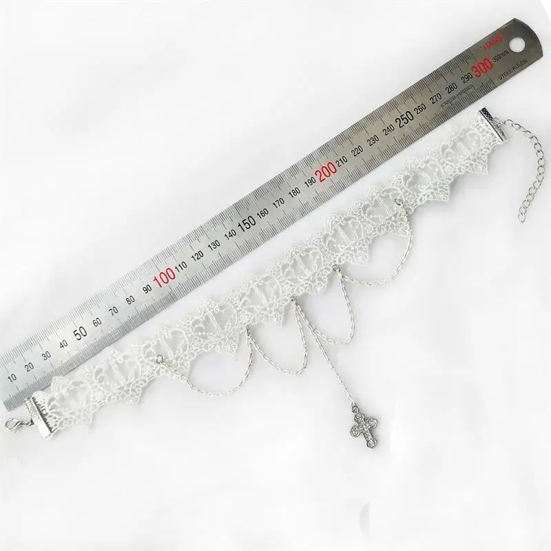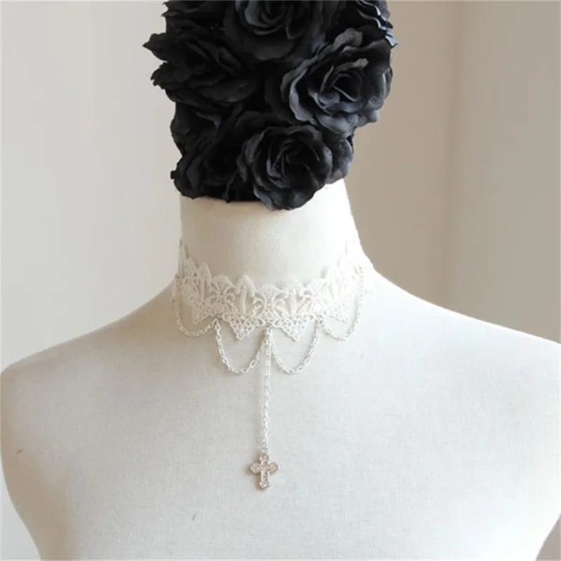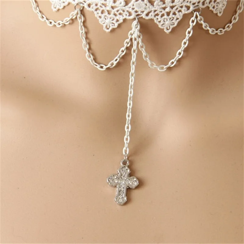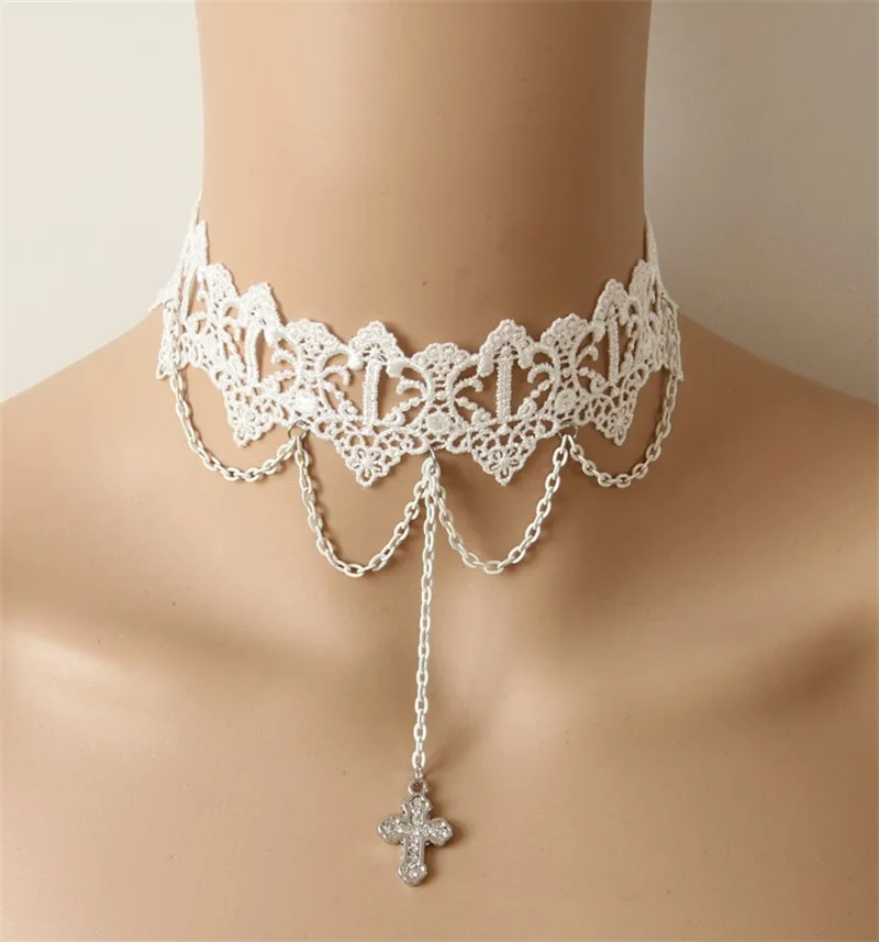 YiYaoFa Vintage White Lace Necklace Cross Pendant Choker Necklace for Women Accessories Gothic Lady Party Jewelry Collar GN-72