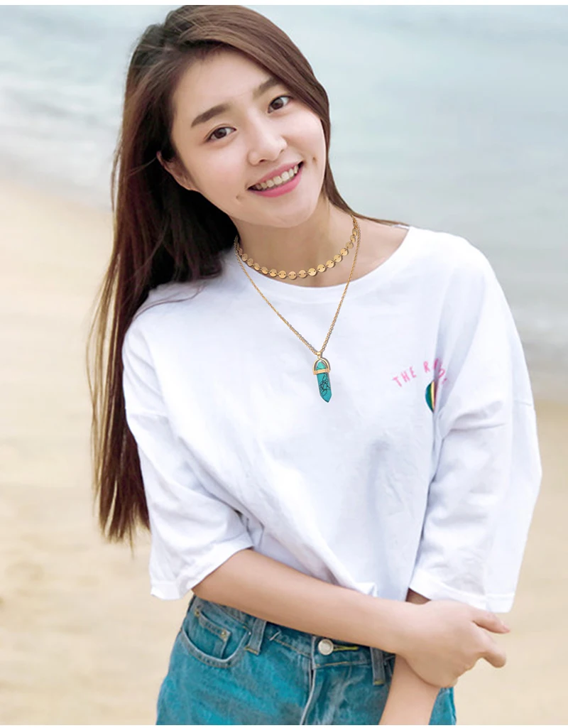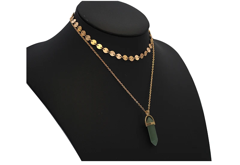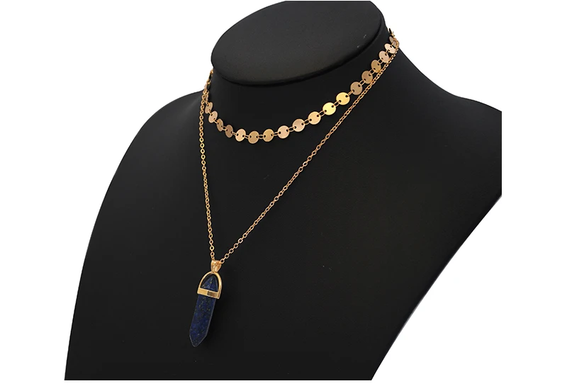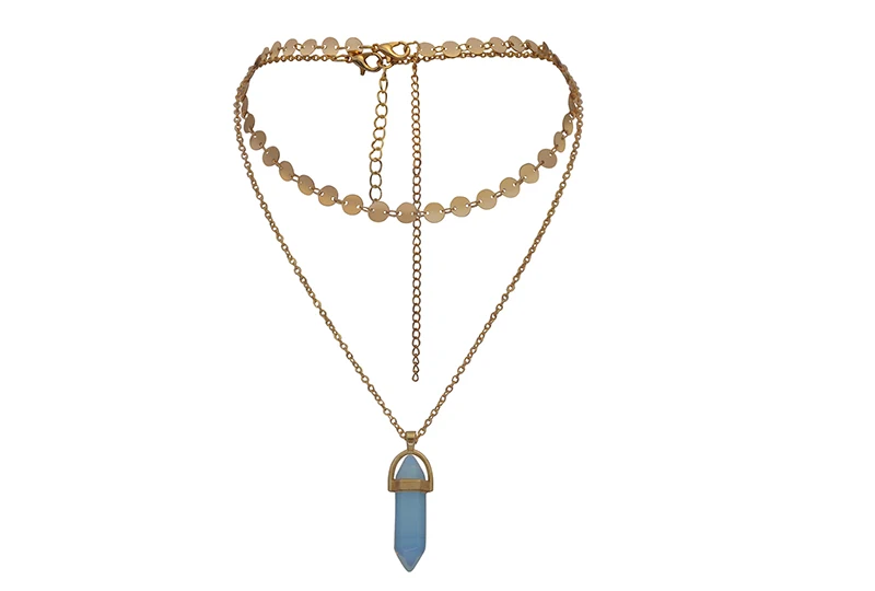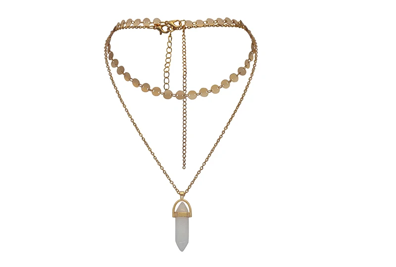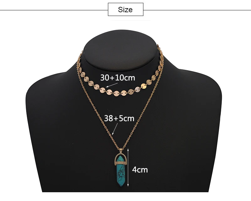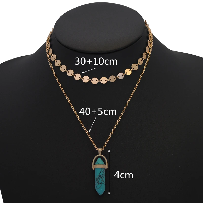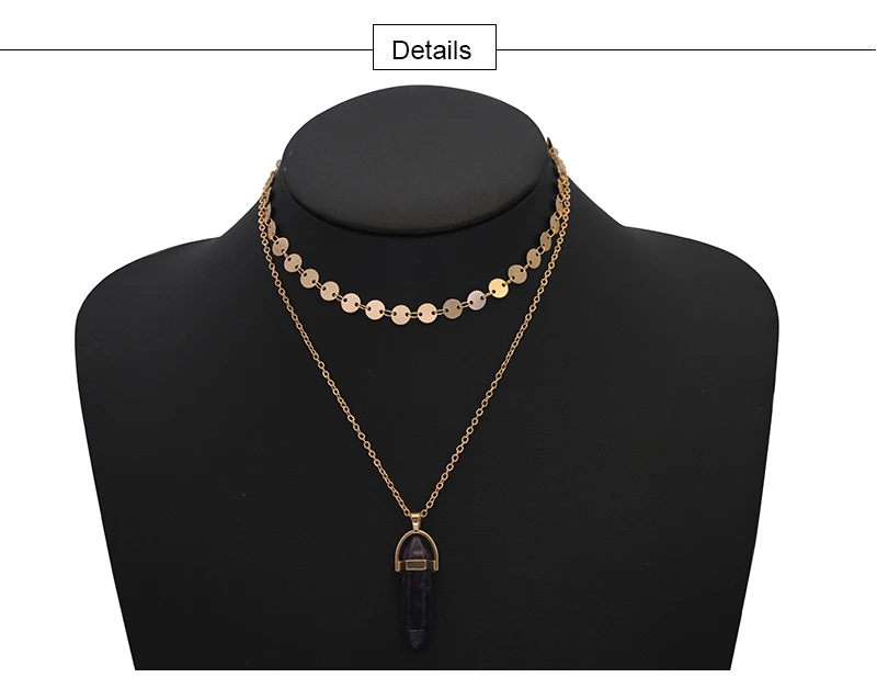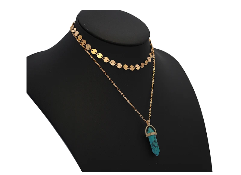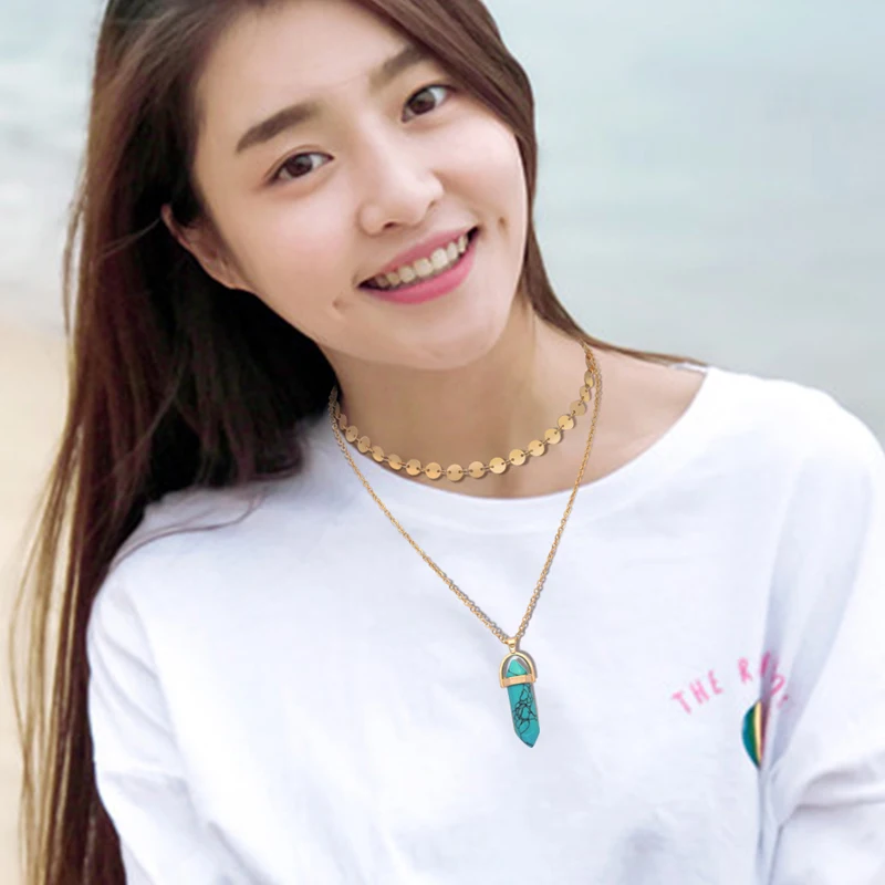Yumfeel New Fashion Jewelry Choker Necklaces Natural Stone Pendant Necklace Gold Disc Choker Necklace Set 2pcs/Set
