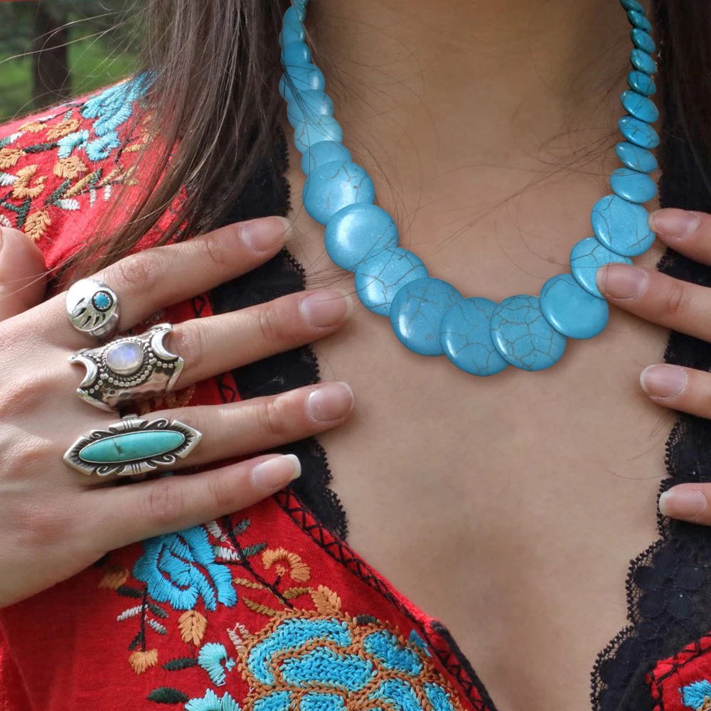 Yumfeel New Turquoise Bracelet Jewelry Set Vintage Silver Plated Necklace Bracelet Earring Ring Jewelry Sets Women
