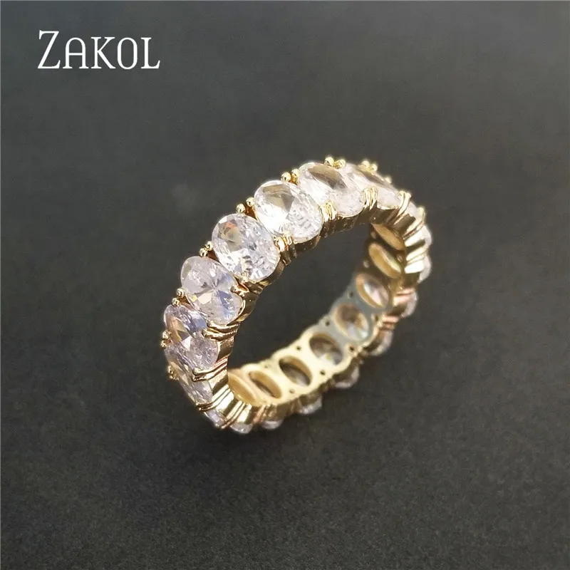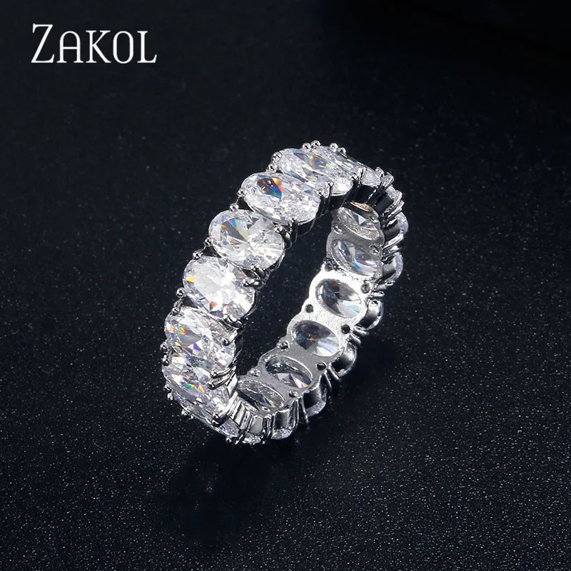 ZAKOL Brand Eternity Rings for Women Luxury Oval Cubic Zirconia Finger Ring Fashion Wedding Jewelry Femme Girls Couples Gift