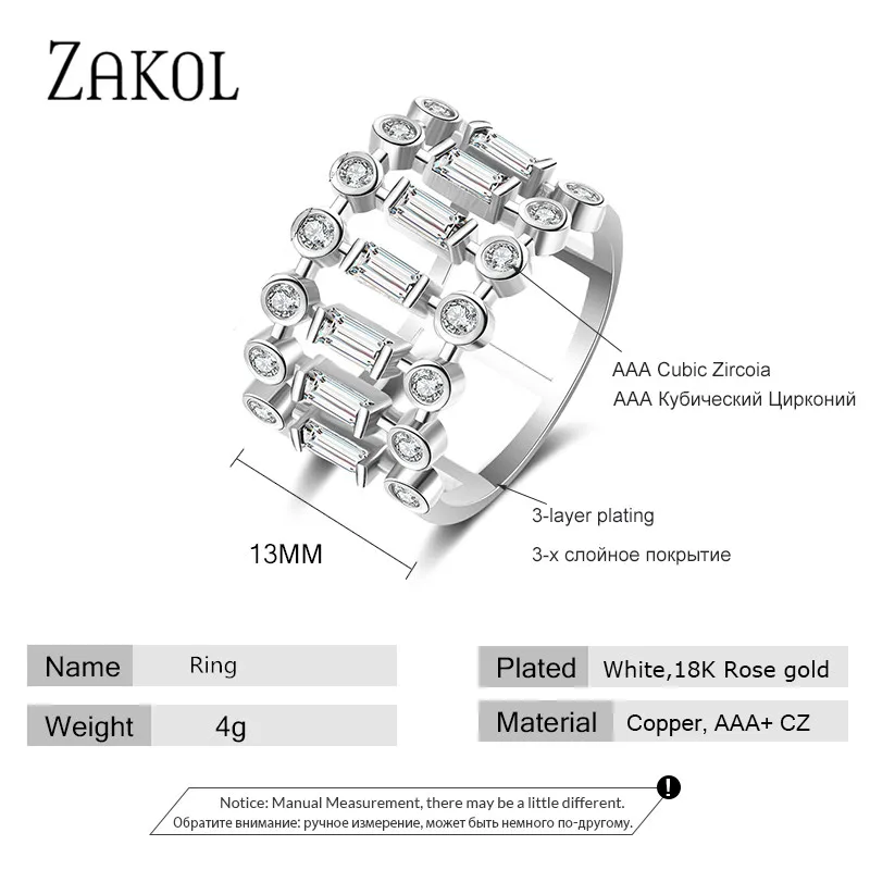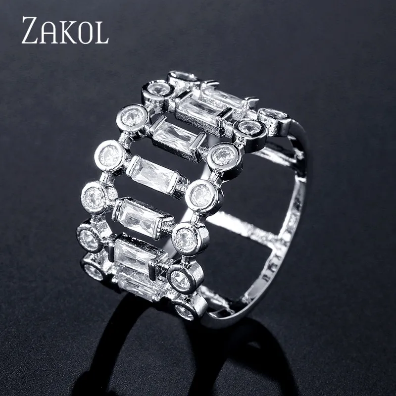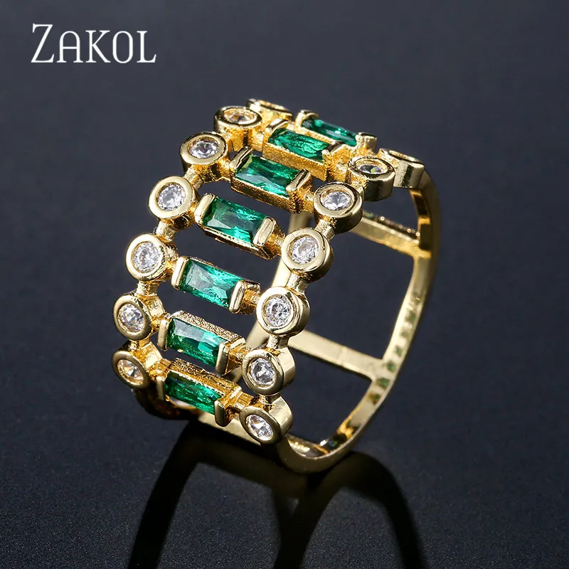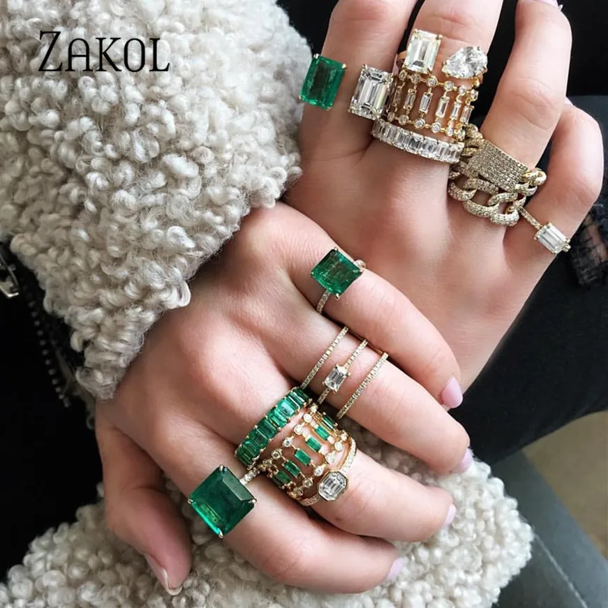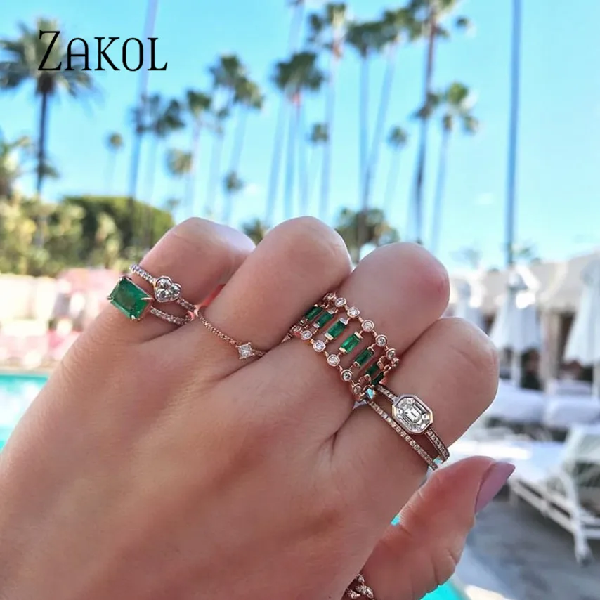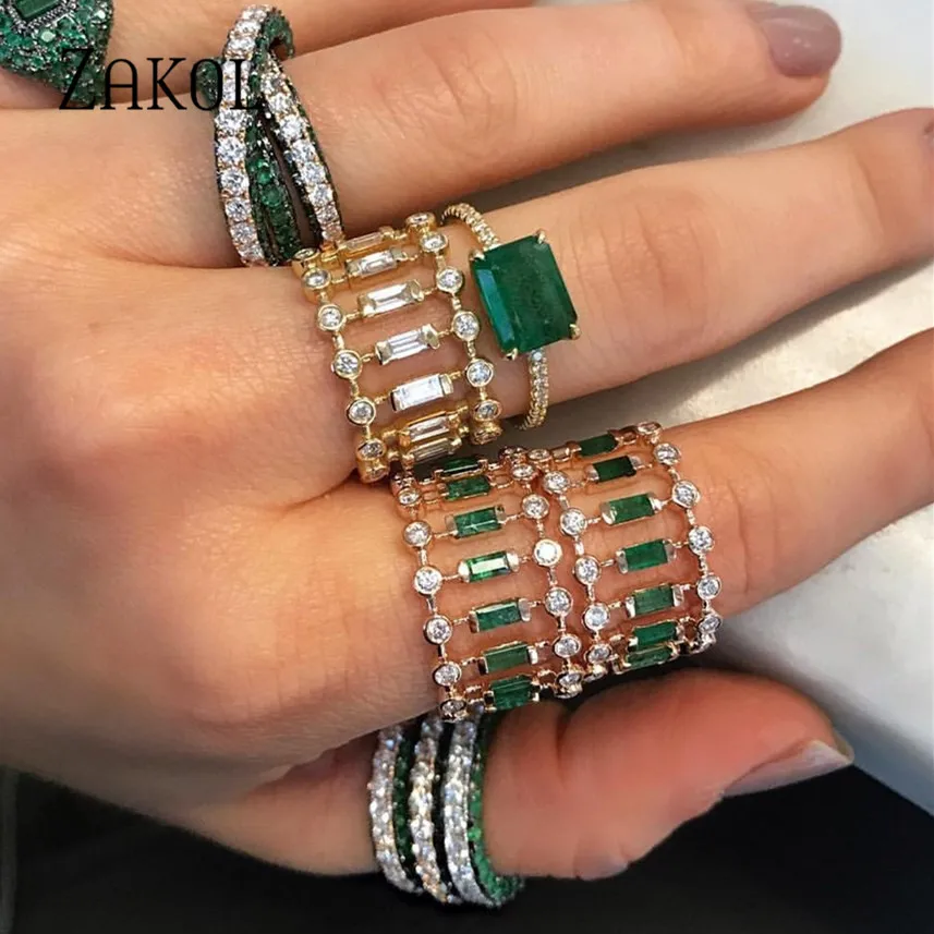 ZAKOL Eternity Luxury Green Stackable Chic Rings for Women Wedding Cubic Zircon Engagement Dubai Bridal Statement Finger Ring