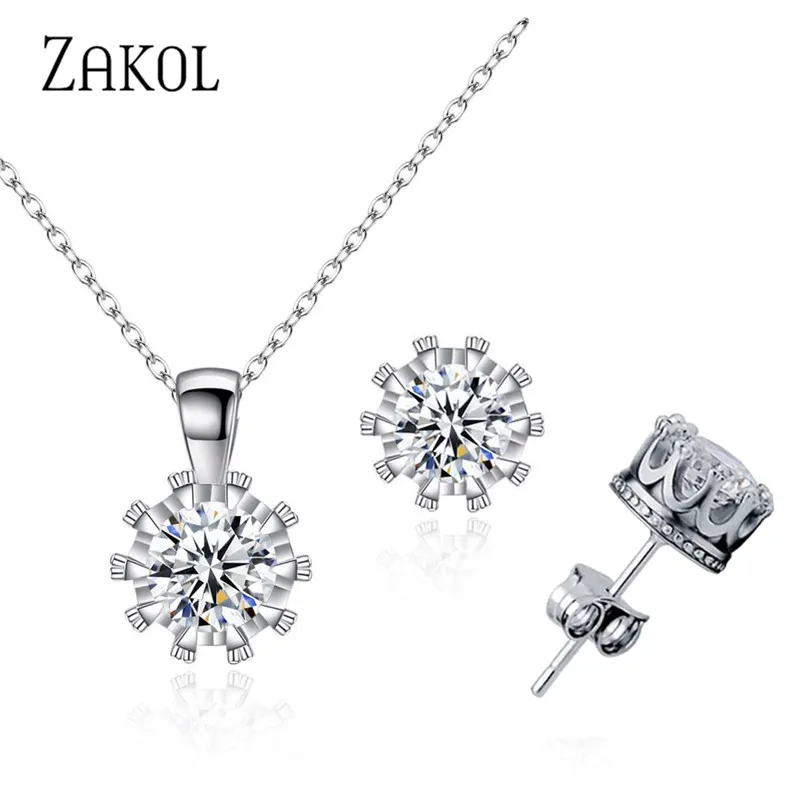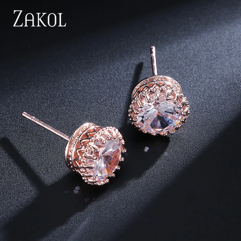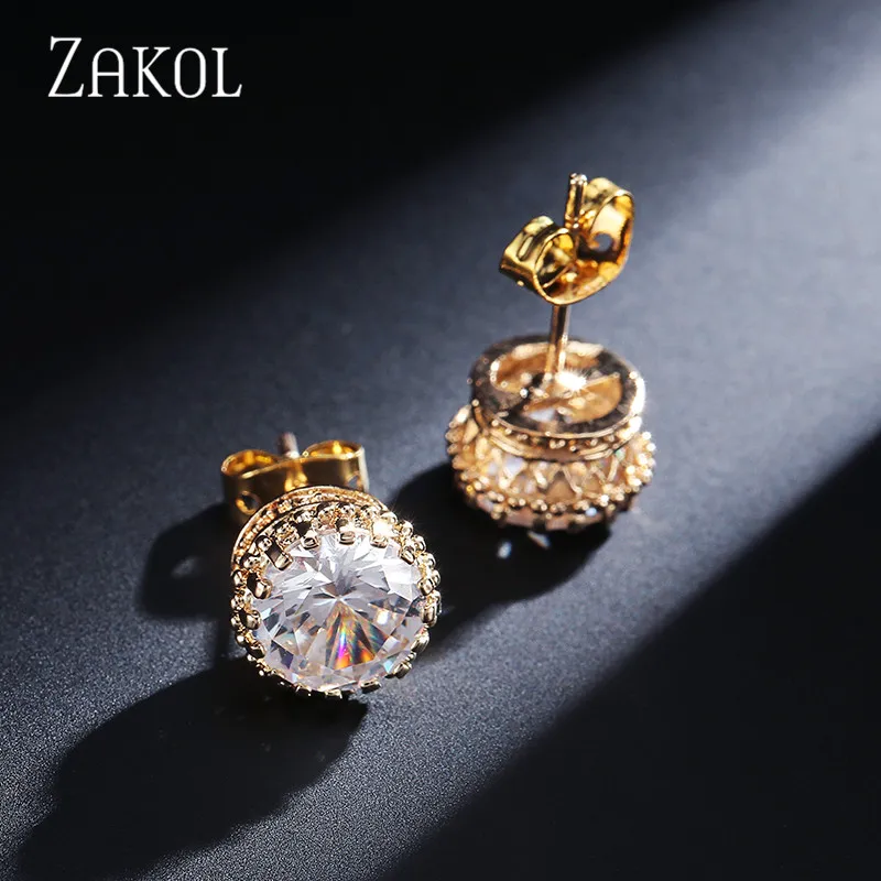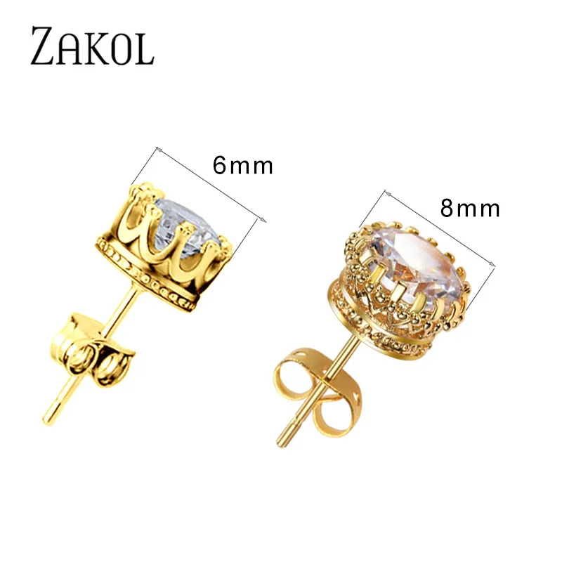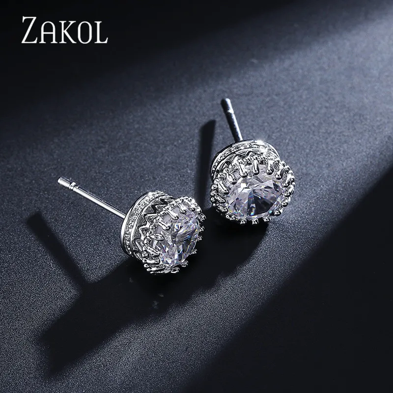 ZAKOL Rouns Stud Earings Fashion Jewelry Unisex Trendy Women/Men Crystal Earrings Crown Earring Piercing Gifts Wholesale FSEP398