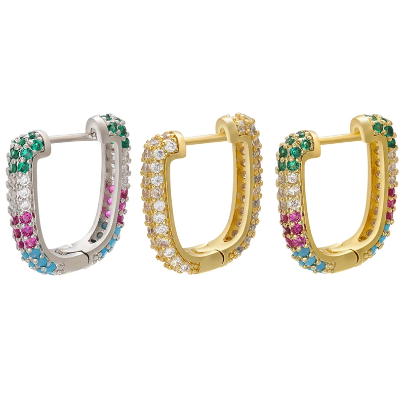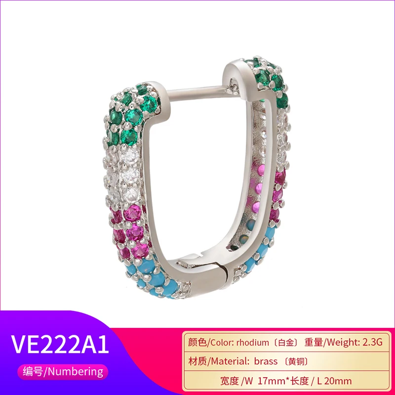 ZHUKOU 1piece CZ crystal small hoop earring for women gold/silver color rainbow Round/rectangle hoop earring Jewelry VE222 VE251